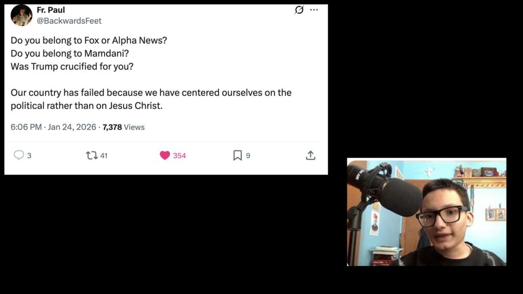 “Do you belong to Fox or Alpha News? Do you belong to Mamdani? Was Trump crucified for you? Our country has failed because we have centered ourselves on the political rather than on Jesus Christ” (I apologize, this was left out on the video)